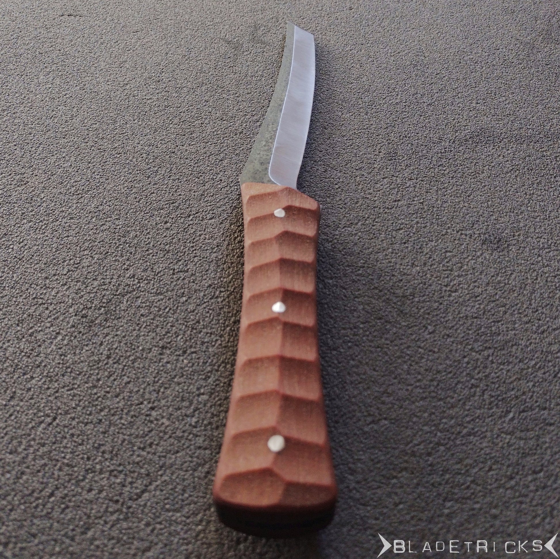 Sculpted natural micarta handle scales, pinned & epoxied