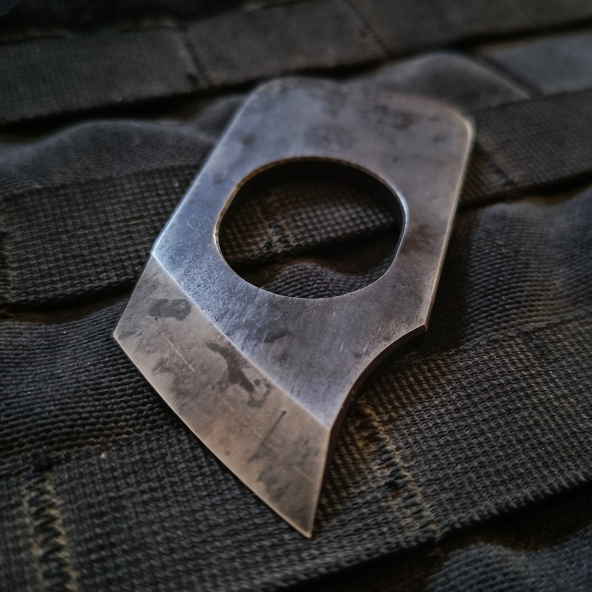 Designed for a secure, knuckle-duster-style grip, the index finger locks into the central hole, ensuring maximum control and retention.